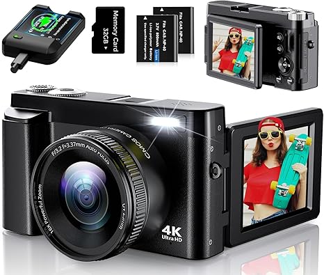 - Never Miss a Moment with 2 Rechargeable Batteries & 32GB card: This 4K vlogging camera comes with 2 rechargeable batteries and a high-quality 32GB card, you can shoot all day without worrying about running out of power.
