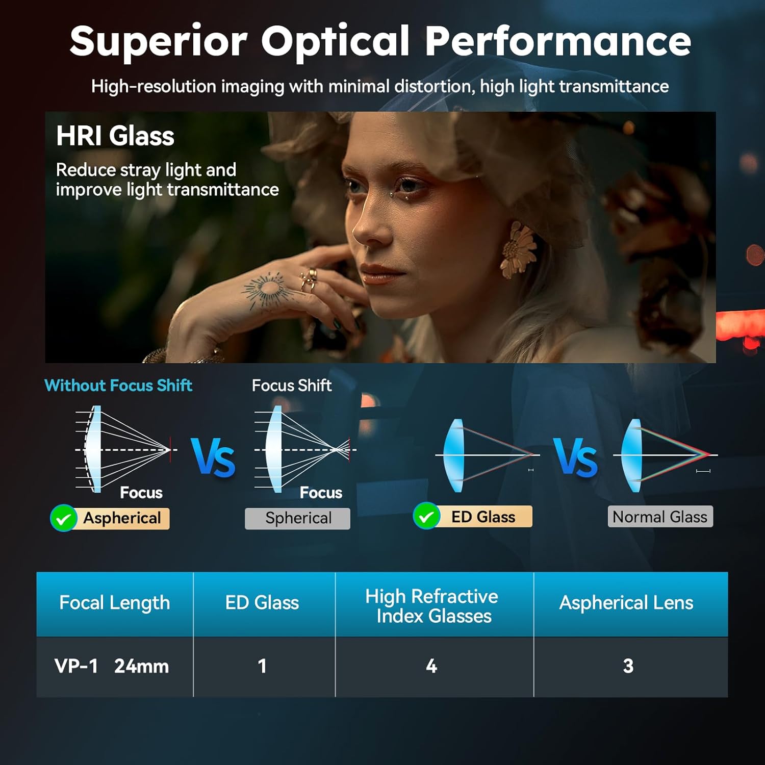 Featuring a fast T1.4 aperture, the SIRUI VP-1 lens excels in low-light conditions, providing you with the flexibility to shoot in various lighting situations without compromising image quality. The 24mm focal length offers a wide field of view, ideal for capturing expansive landscapes, architecture, and interior shots with precision and clarity.